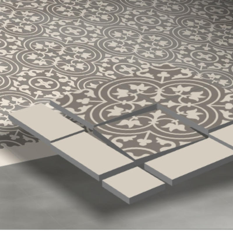 weitere Zementfliesen-Motive kombiniert mit Bordürenfliesen.