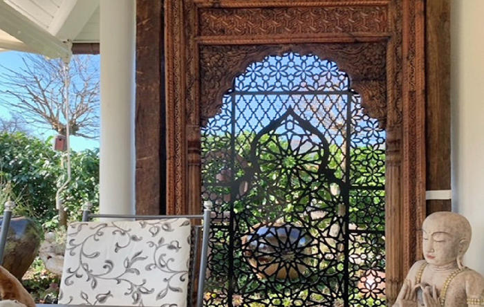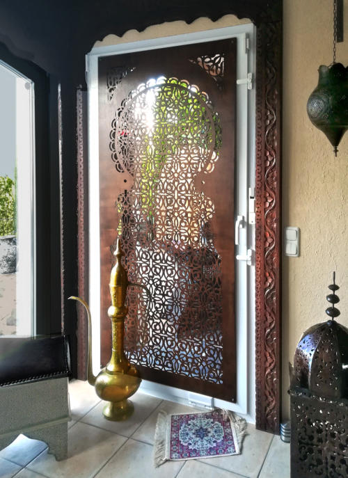Dekorpaneele als ornamentiertes Stahlblech für einen Gartenpavillion. Eine Auftragsfertigung mit Designvorgabe auf Maß. Die