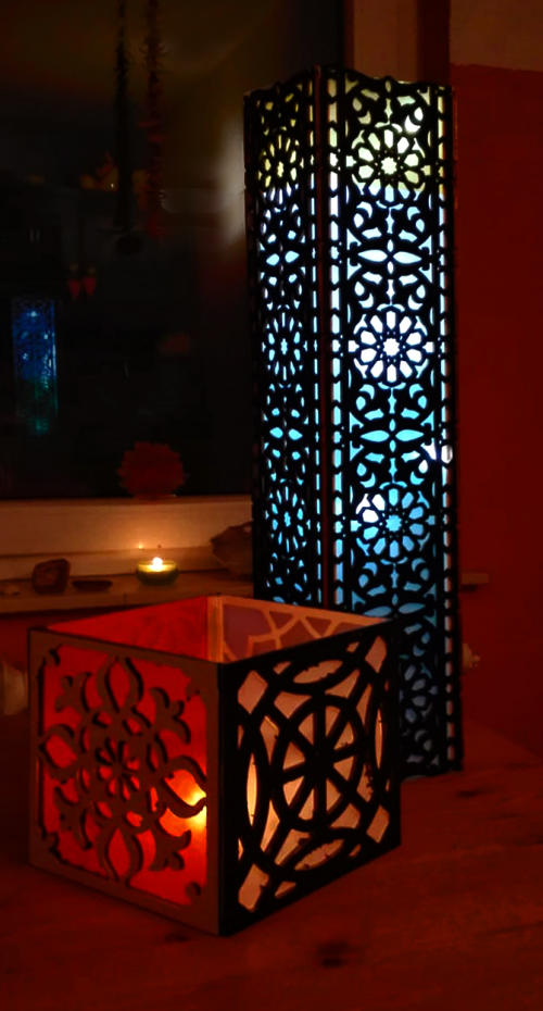 Fensterbilder, Lampenschirme, Möbel-Ornamente, aus Metall für Sichtschutz oder Metallzäune