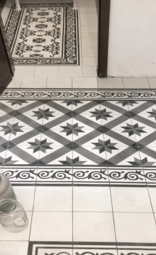 Kombination mit Weiß und Schwarz, Graubeige oder Graublau ... Zementfliesen in
